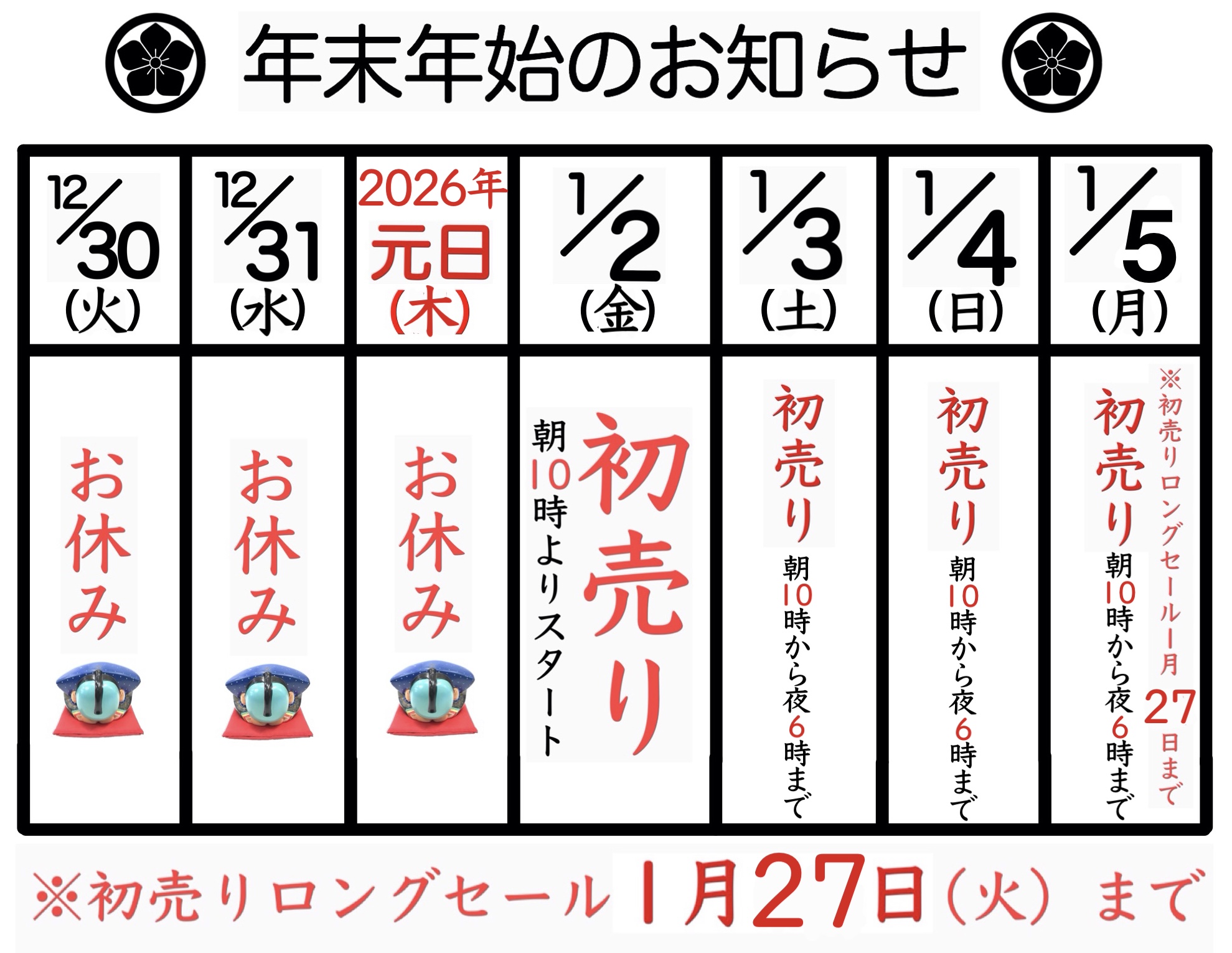 2025年もありがとうございました。 12月30日〜1月1日 お休みとさせて…